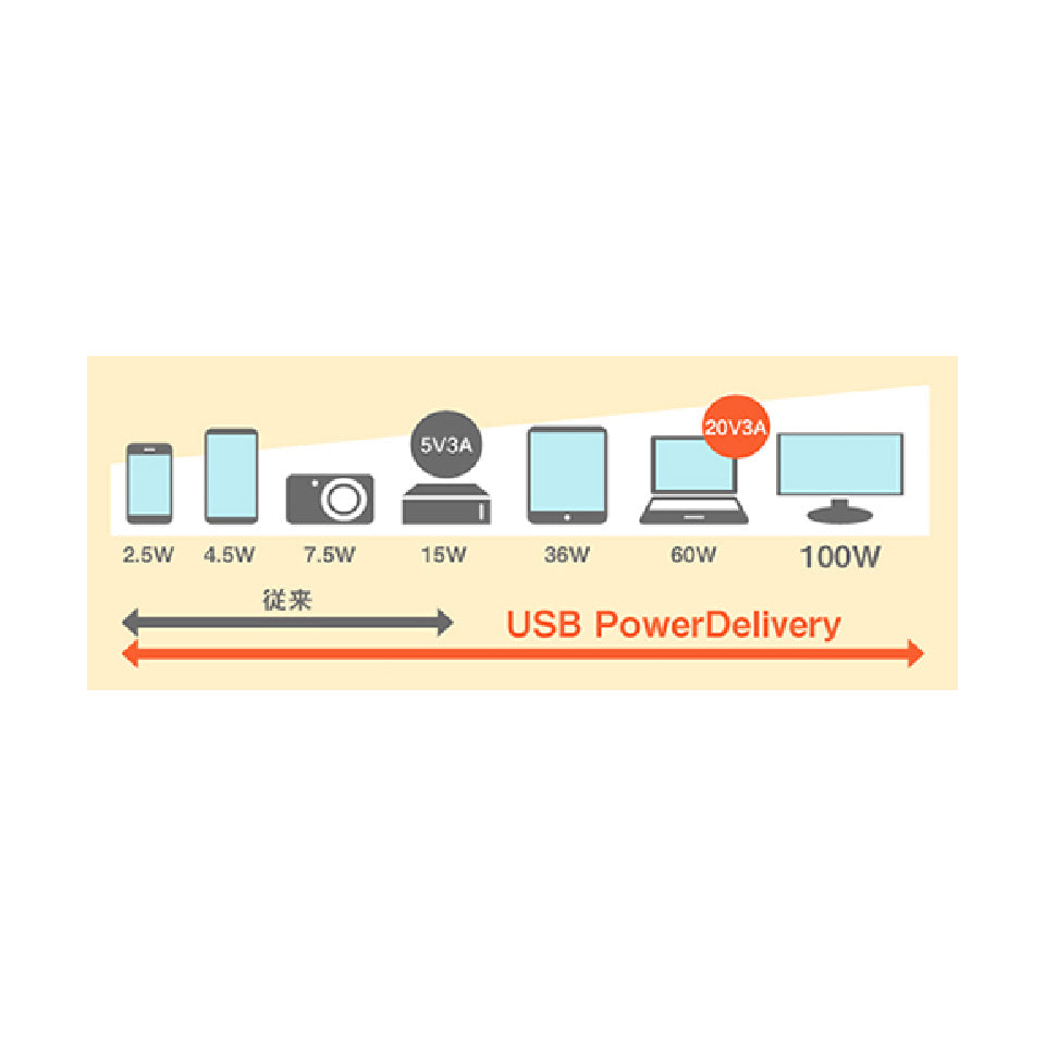 | USB Power Delivery | 最大 20V/3A(60W) | |